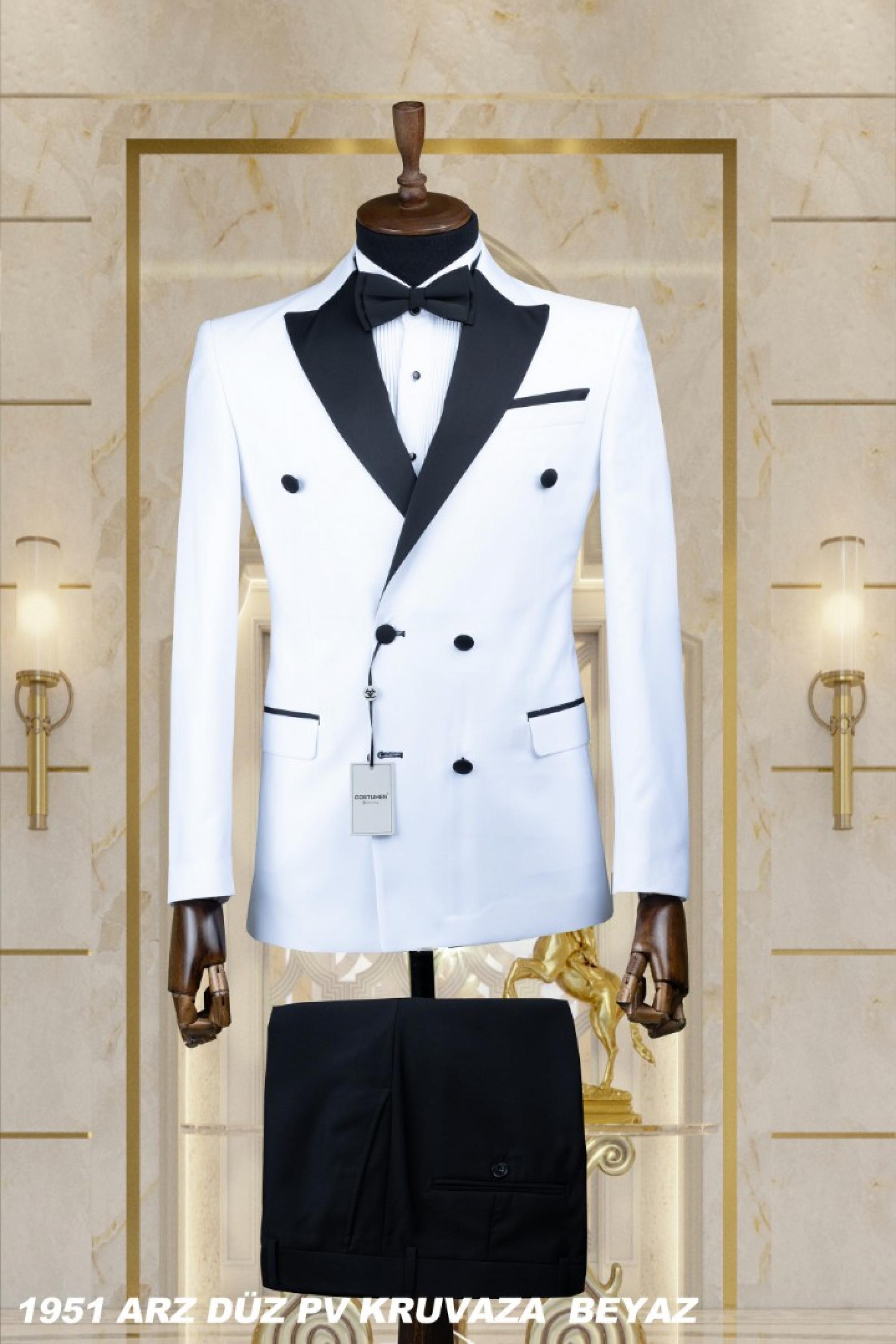 Double Breasted Men's Wedding Suit White